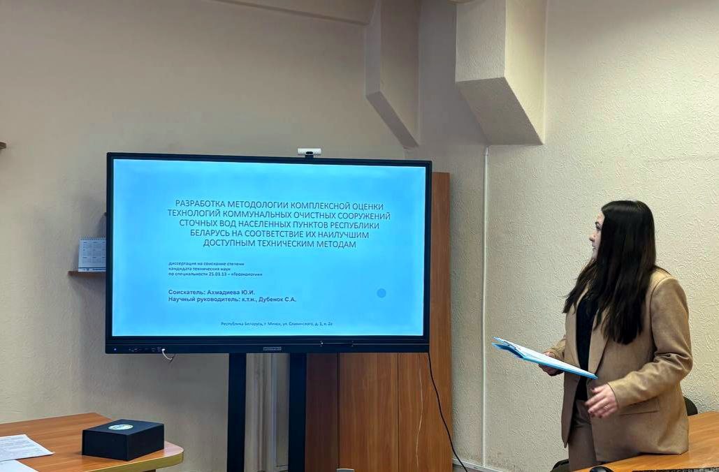 21 октября 2025 года в РУП "ЦНИИКИВР" прошла государственная аттестация старшей научной сотрудницы отдела мониторинга и государственного водного кадастра Ахмадиевой Юлии Игоревны, обучающейся в аспирантуре предприятия по специальности "Геоэкология" (технические науки).